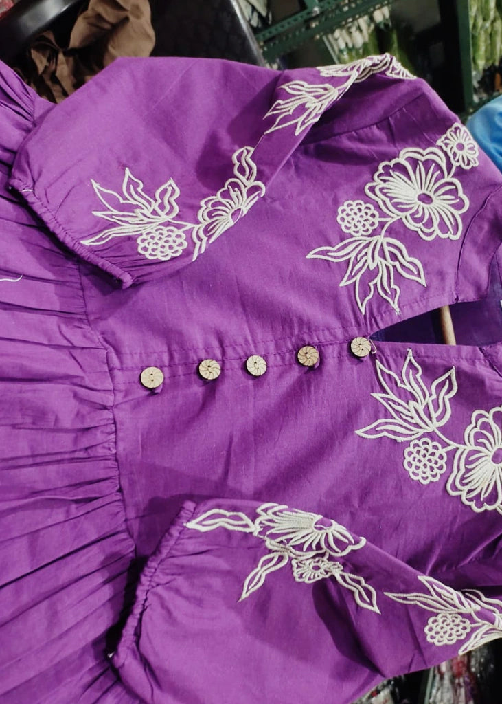 Add charm to your everyday fashion with this Purple Cotton Embroidery Midi Dress – where style meets comfort.