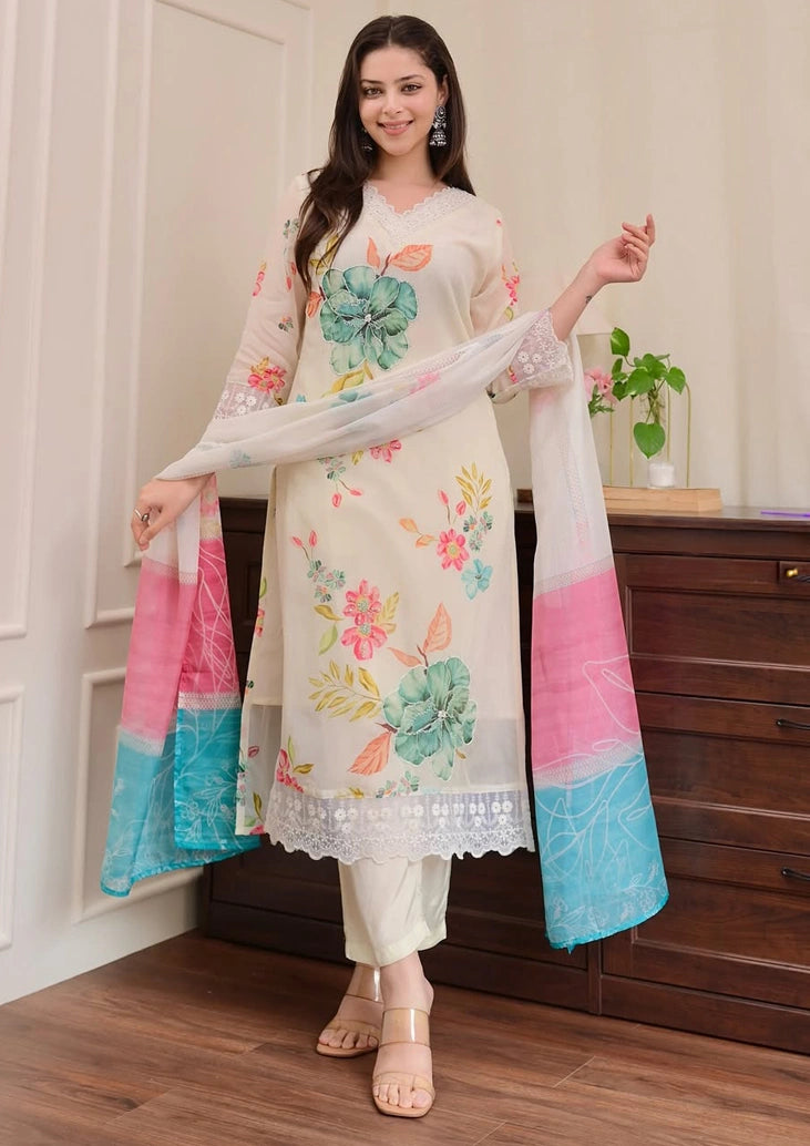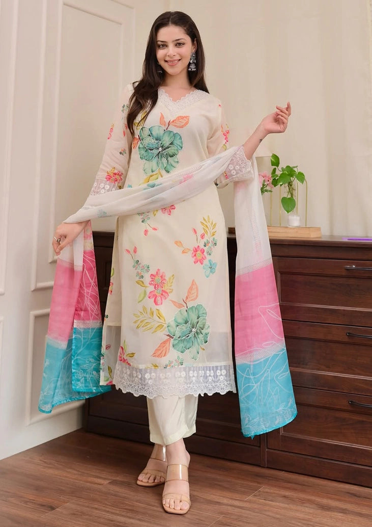 Perfect for festive occasions, family gatherings, weddings, and elegant everyday wear. This suit set combines the luxury of organza with the sophistication of silk for a truly standout look.