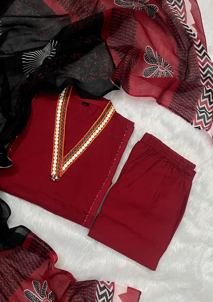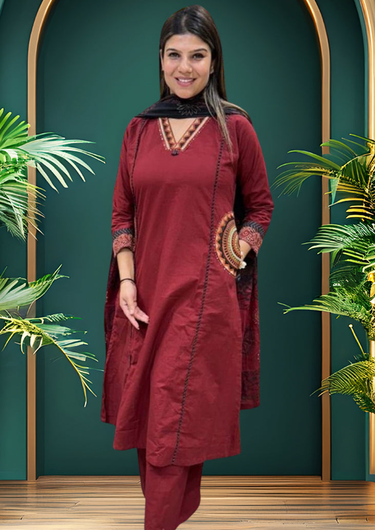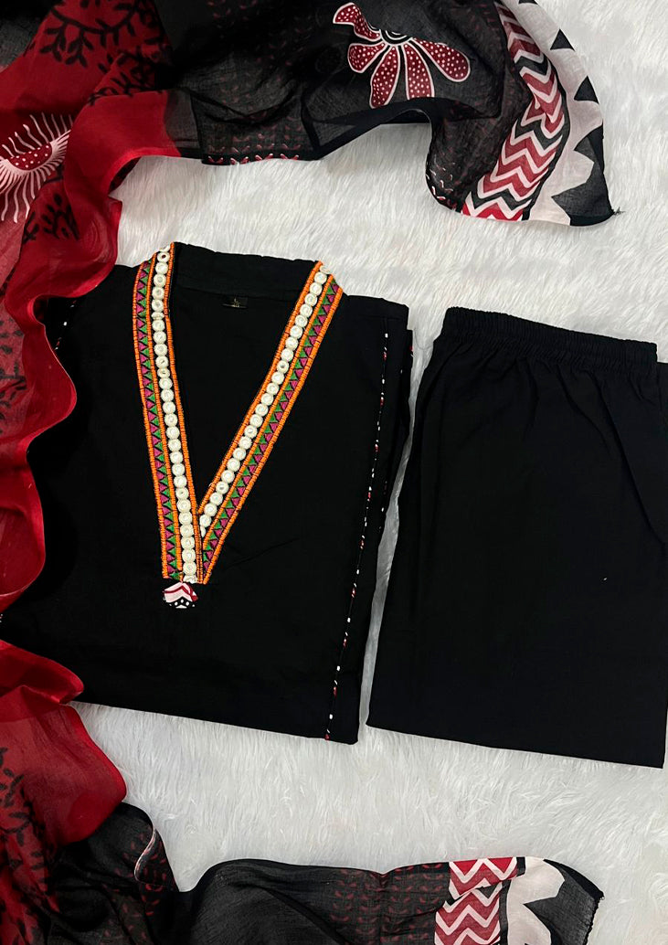 Fabric: Pure Cotton (Top, Bottom & Dupatta – 3 Piece Set)