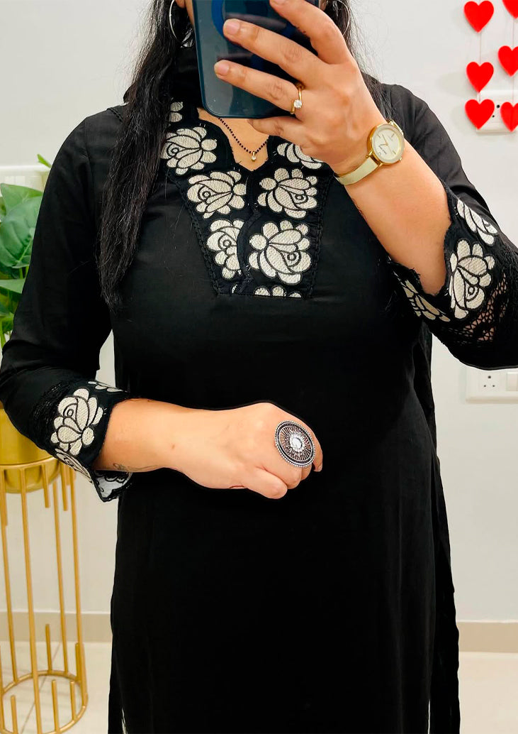 • Work: Intricate Embroidery with Kodi Latkan Lace | Sleeves finished with GPO Lace Detailing