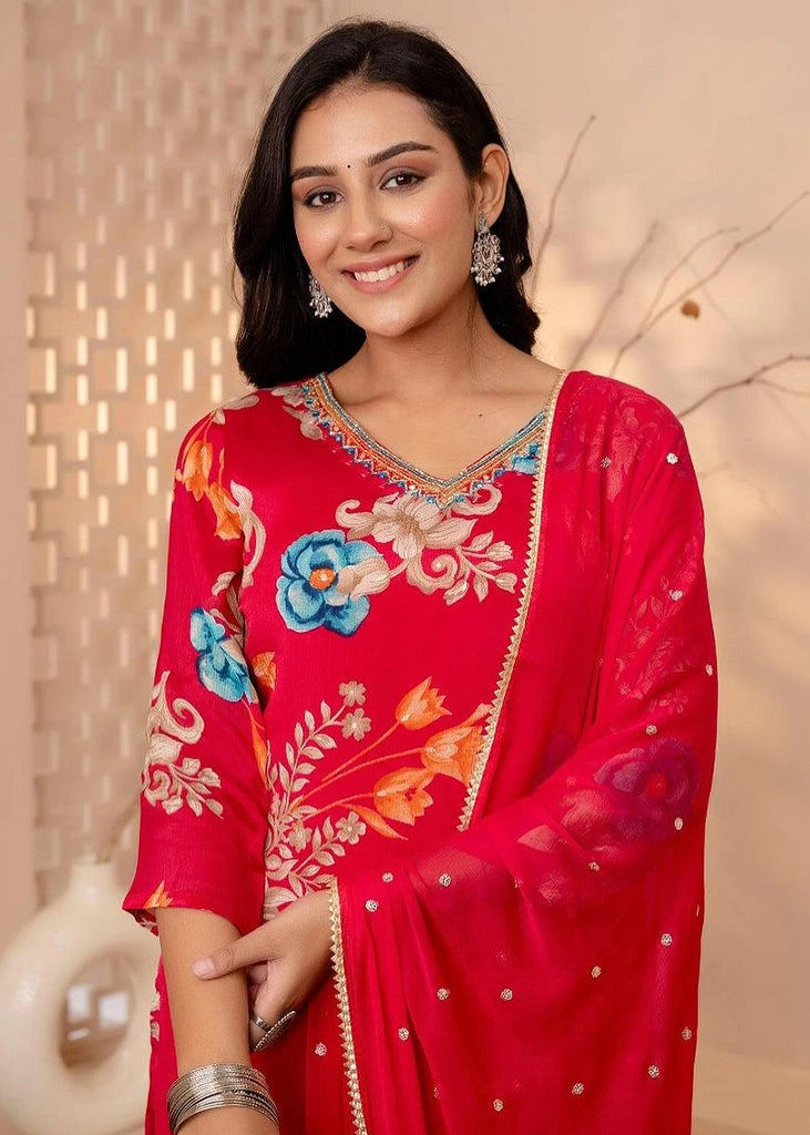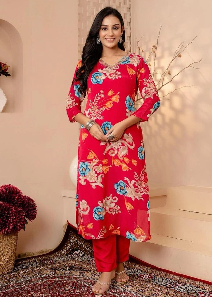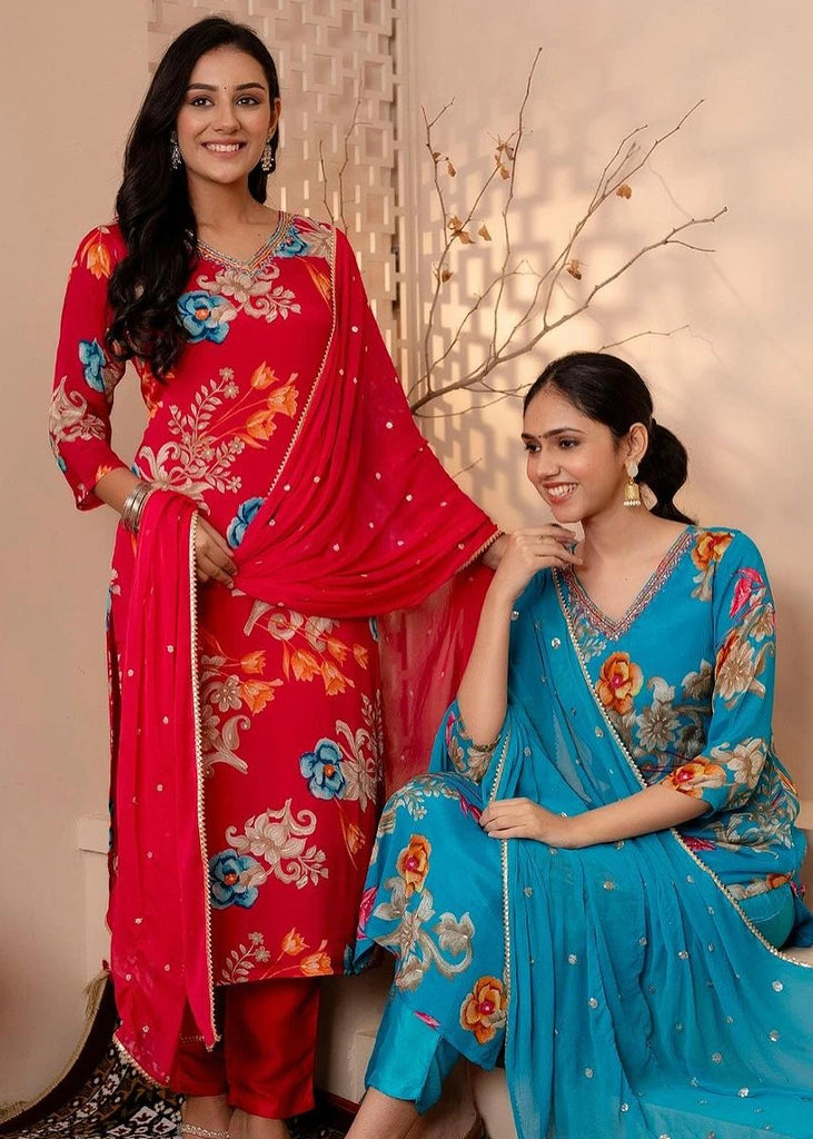 • Kurti: V-neck with chest yoke design for a flattering fit