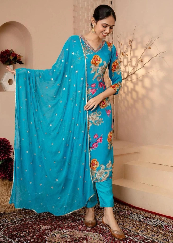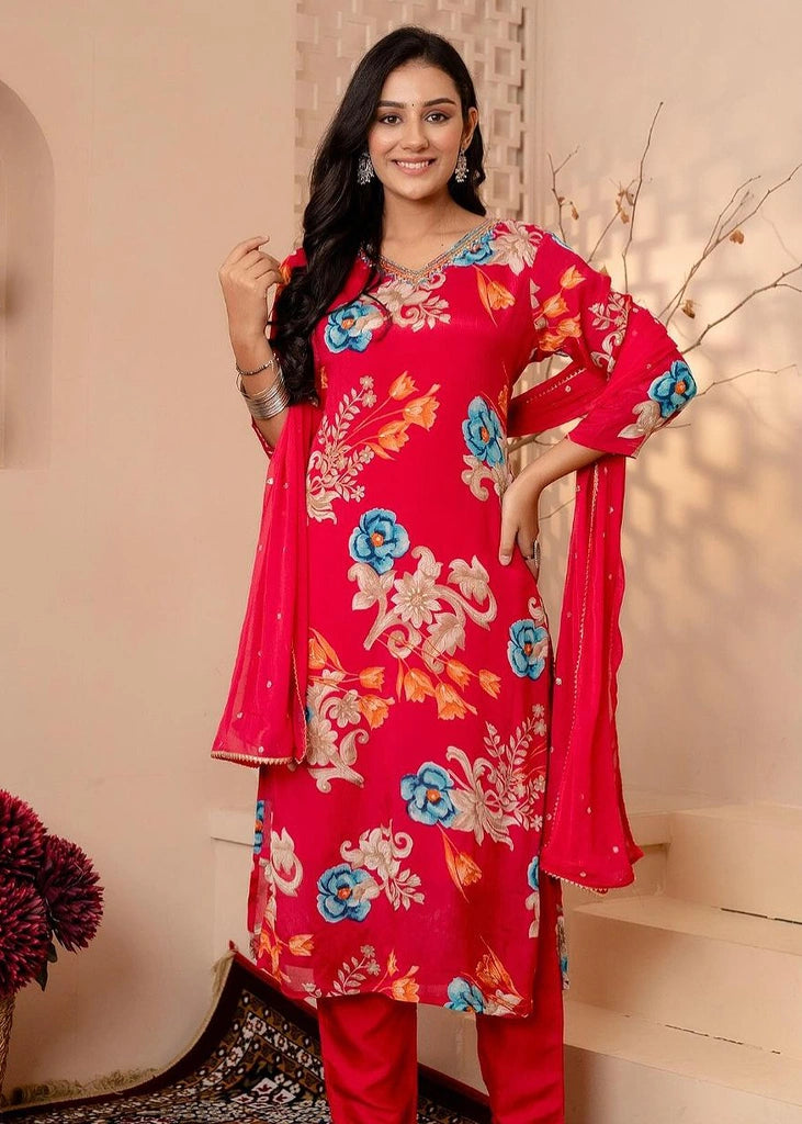 Women’s Cotton Printed Kurti Pant Set with Dupatta
