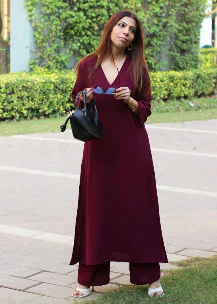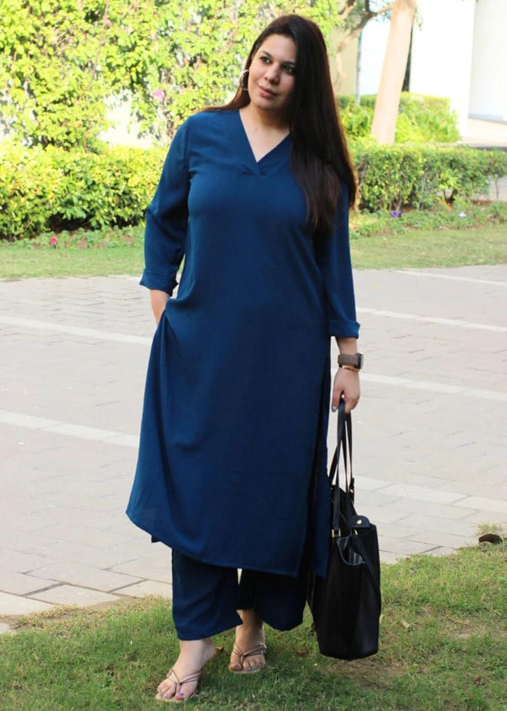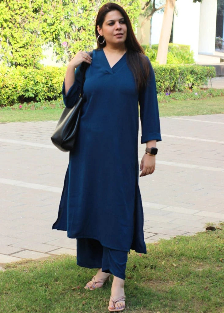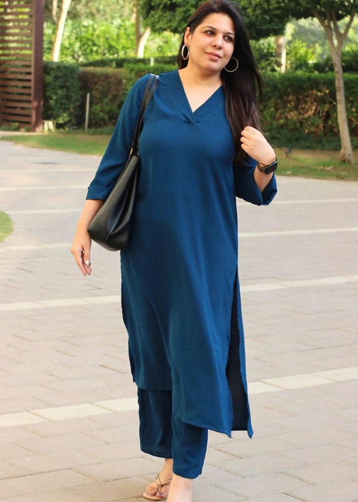 Women’s Pure Cotton Monochrome Pant-Set – Office Wear Kurta & Pant