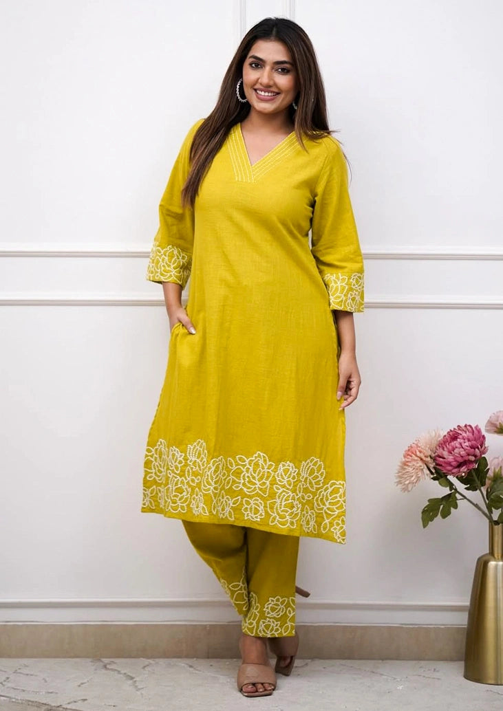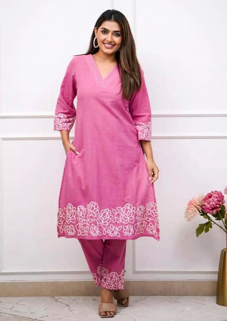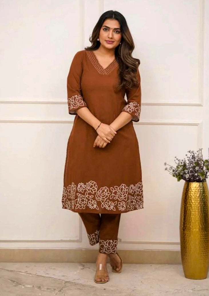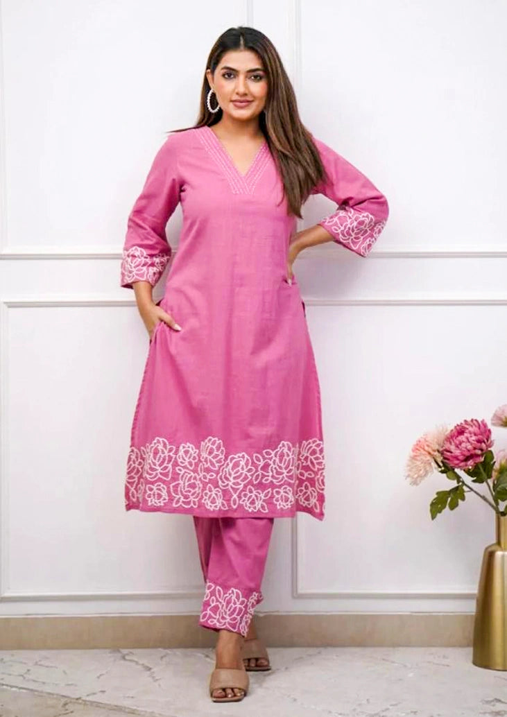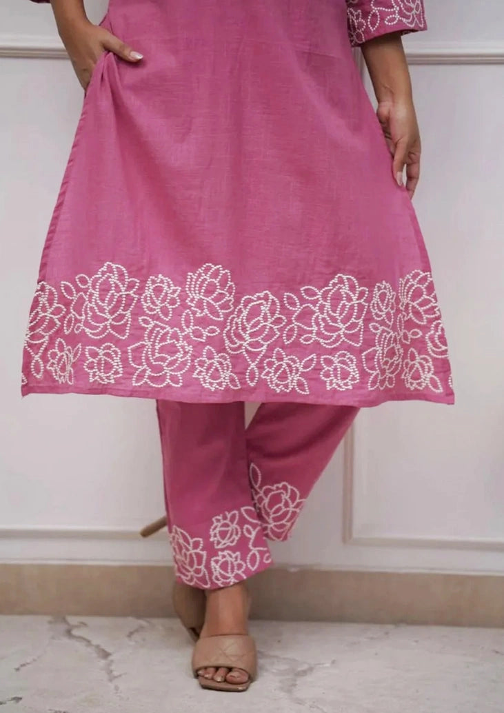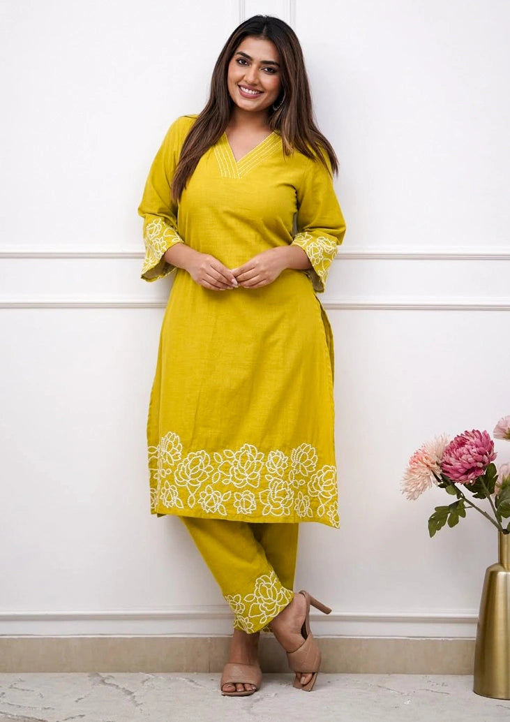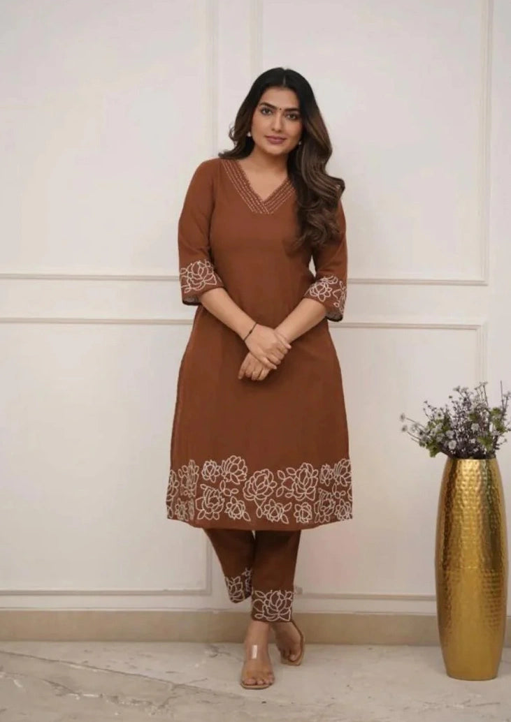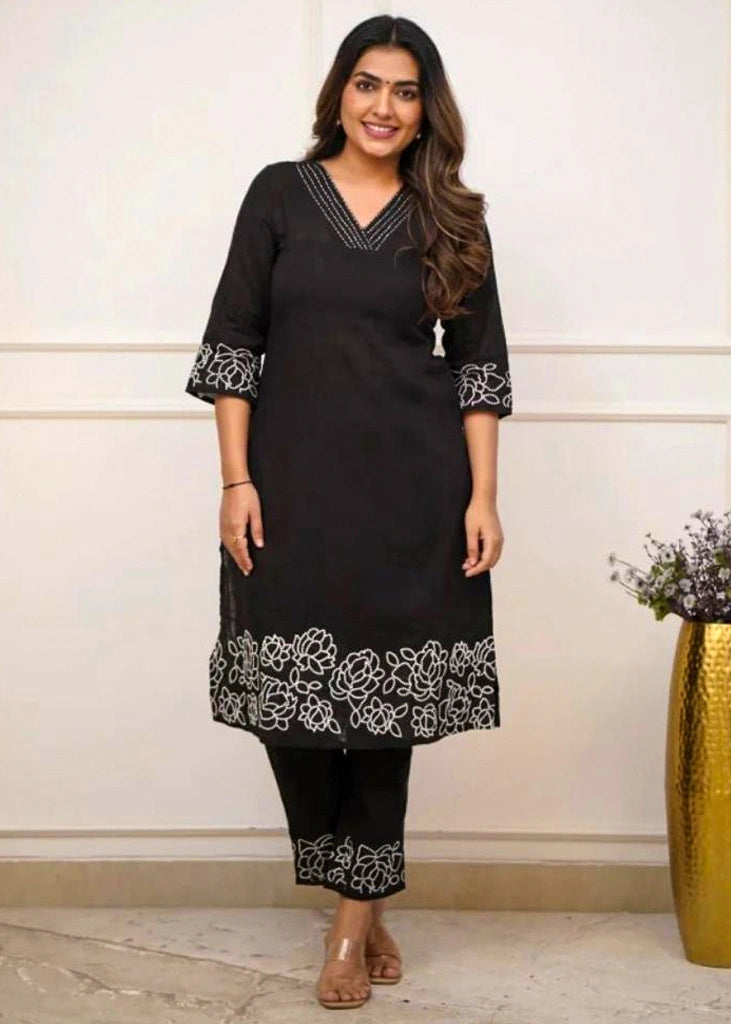 New launch 💃💃 ❣️Festive special ❣️ Upgrade your office wear wardrobe with this classy  kurti embroidery work  detailing with pant for all day comfort and trendy look🌸🌸  Kurta length 44  Pant 39 With one Side Pocket  Fabric - Cotton 60*60   Size - S/36 To XXXL/46 Now Available in 4 colours
