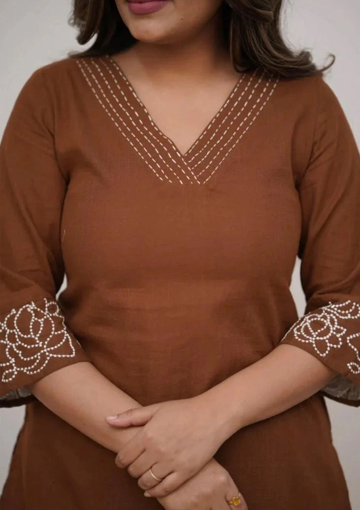 Upgrade your office wear wardrobe with this classy kurti embroidery work