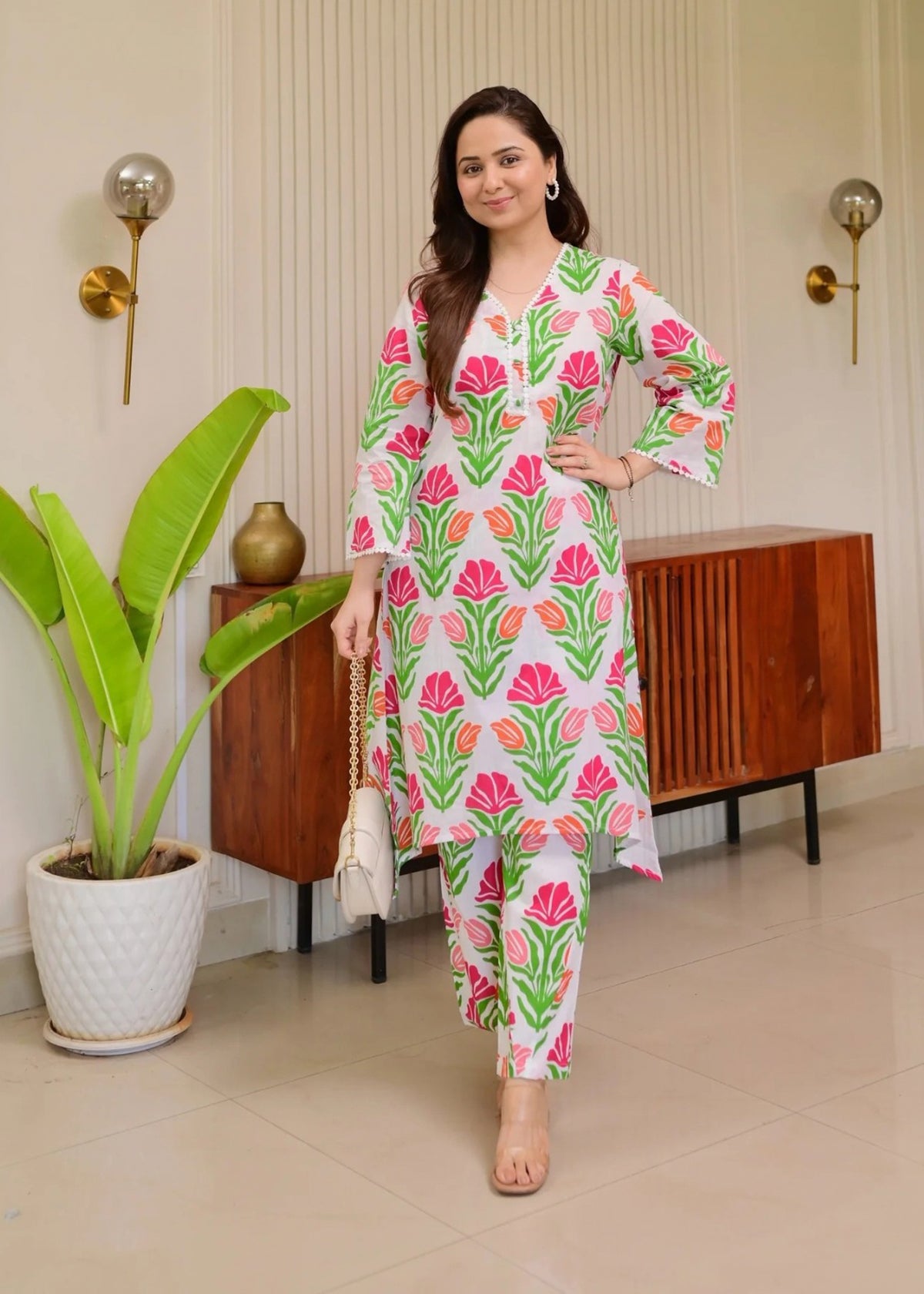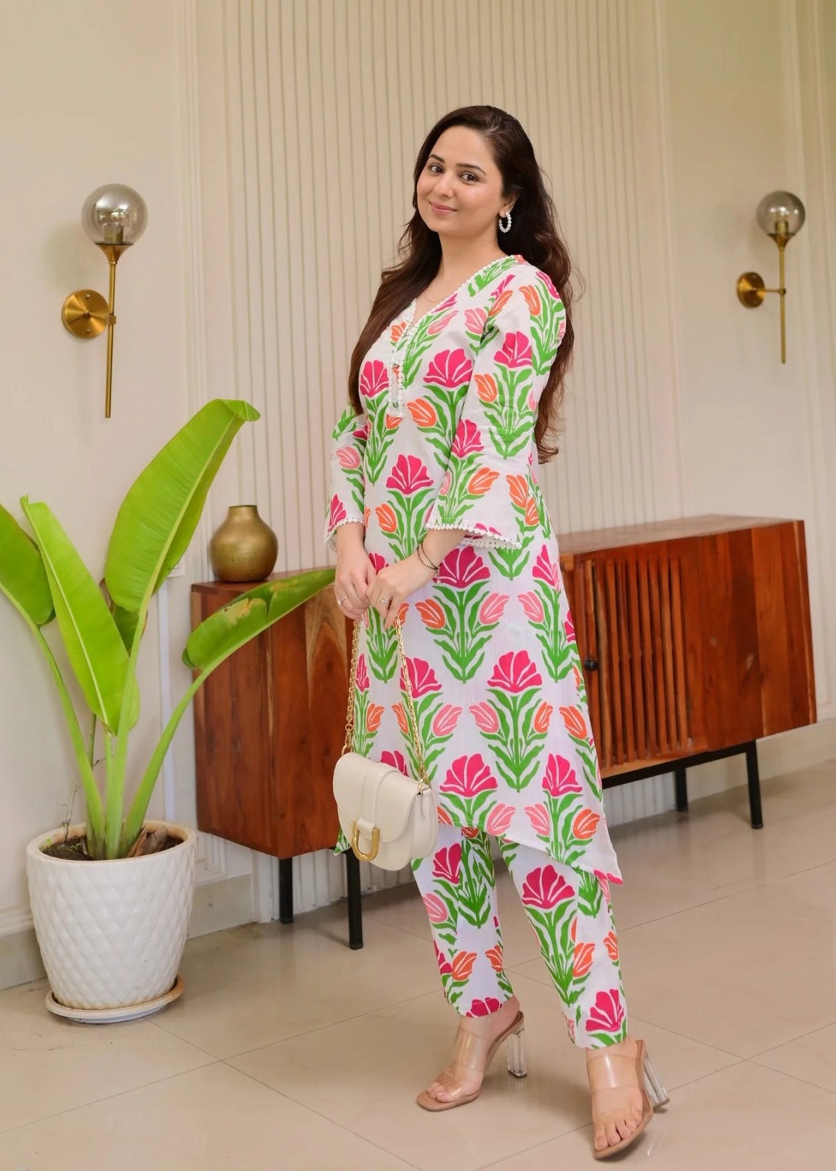 Floral Cotton Co-ord Set for Women – Stylish Printed Kurti with Matching Pants
