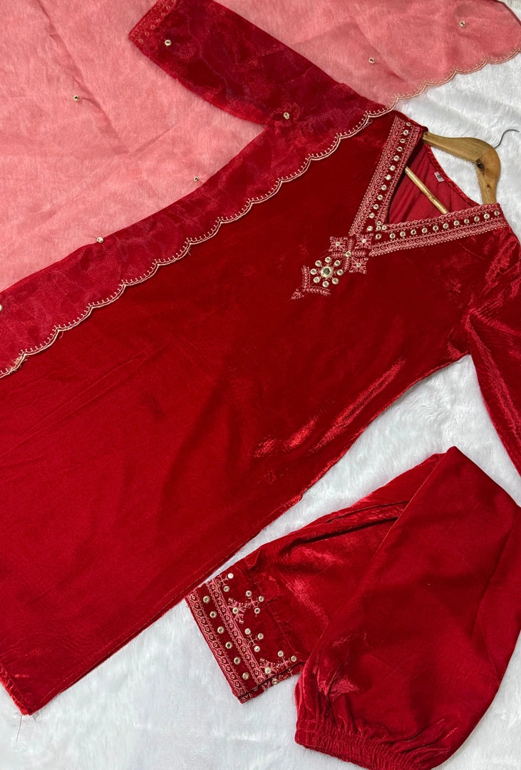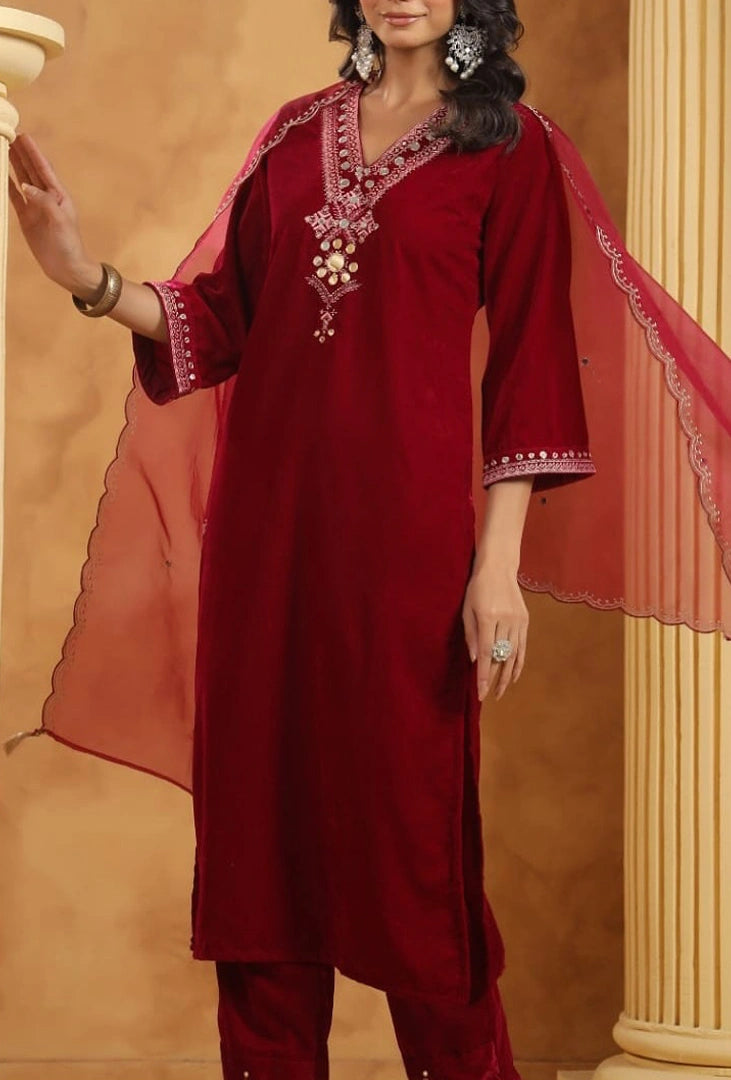 Ivory Luxe Winter Velvet Suit Set with Organza Dupatta