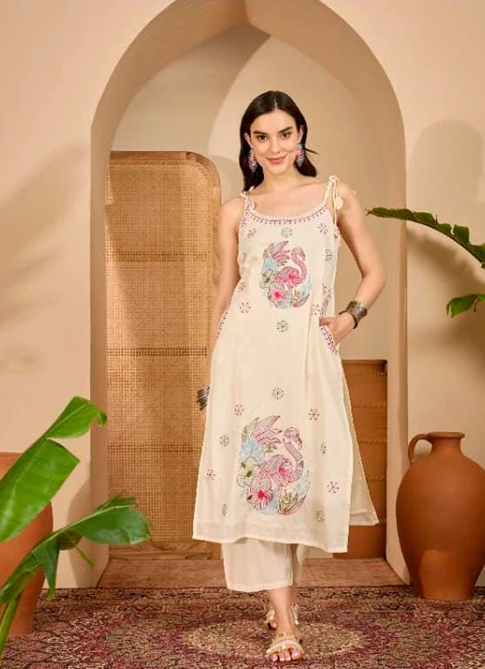 Sleeveless Kurta with elegant all-over embroidery work and two side pockets — designed for both comfort and style.