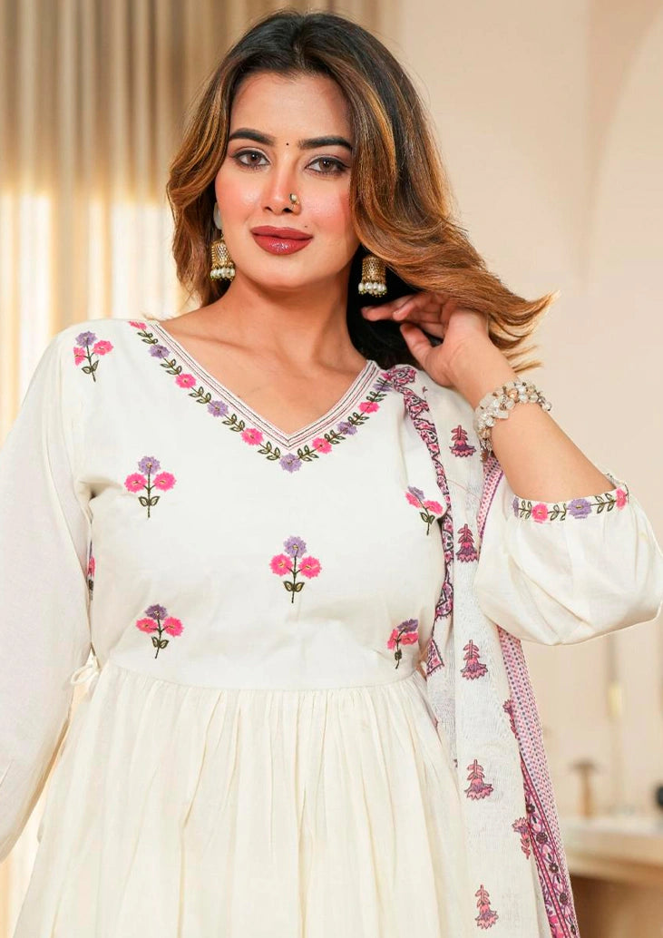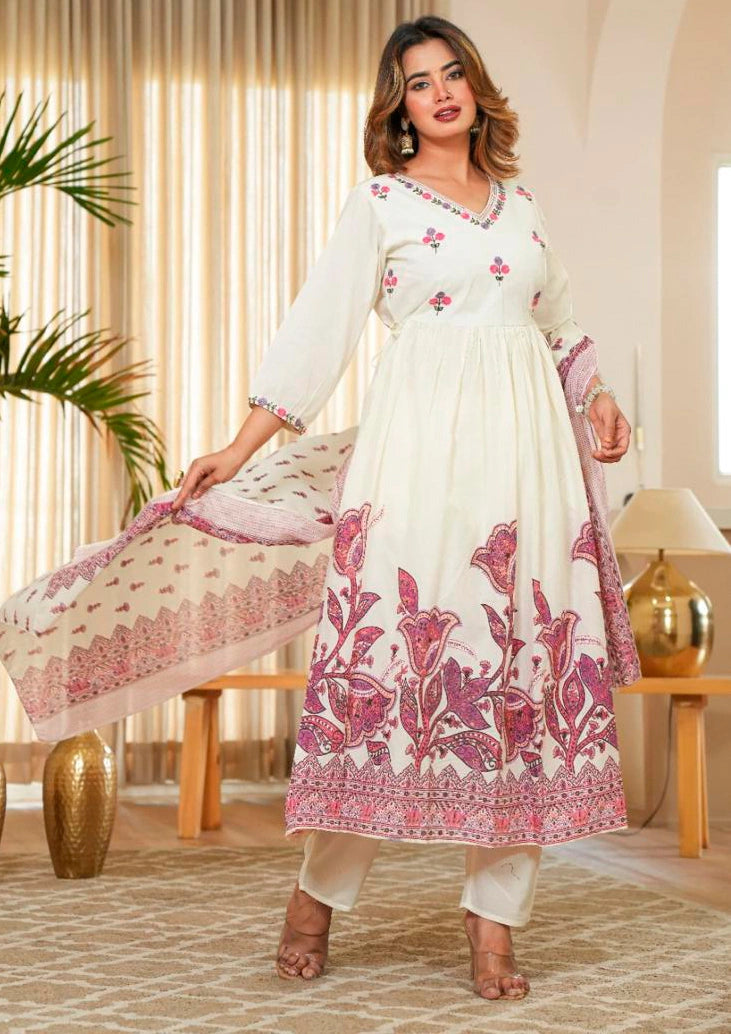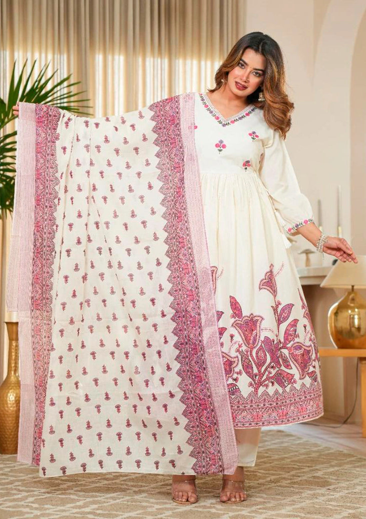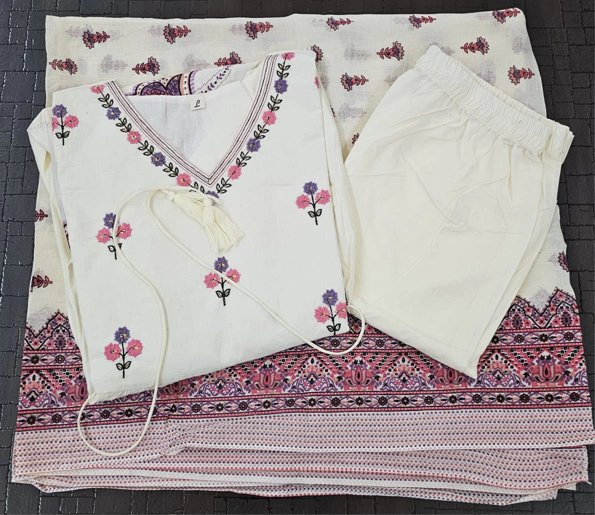 Pure Cotton Embroidered Kurti Pant Dupatta Set